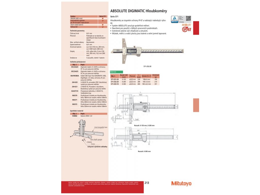ABSOLUTE Digimatic Hloubkoměr IP67 0-300mm MITUTOYO