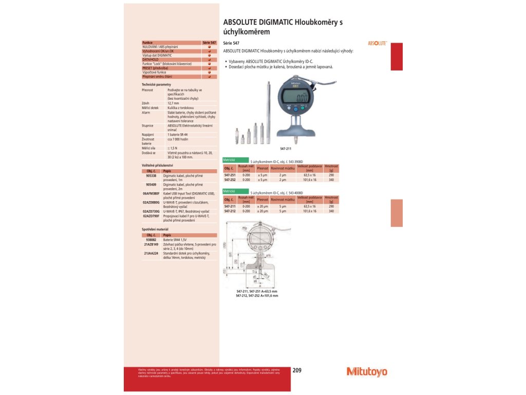 ABSOLUTE DIGIMATIC Hloubkoměry s úchylkoměrem nabízí následující výhody:Doplňkové parametry