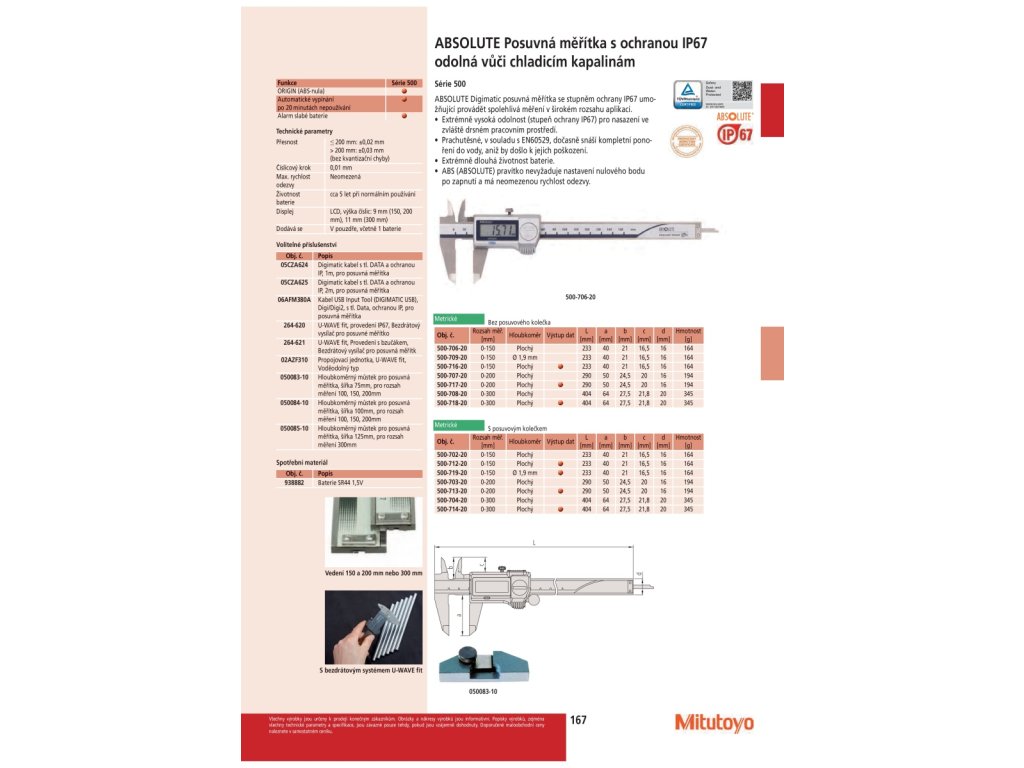 - ABSOLUTE Digimatic posuvná měřítka se stupněm ochrany IP67 umožňující provádět spolehlivá měření v širokém rozsahu aplikací.