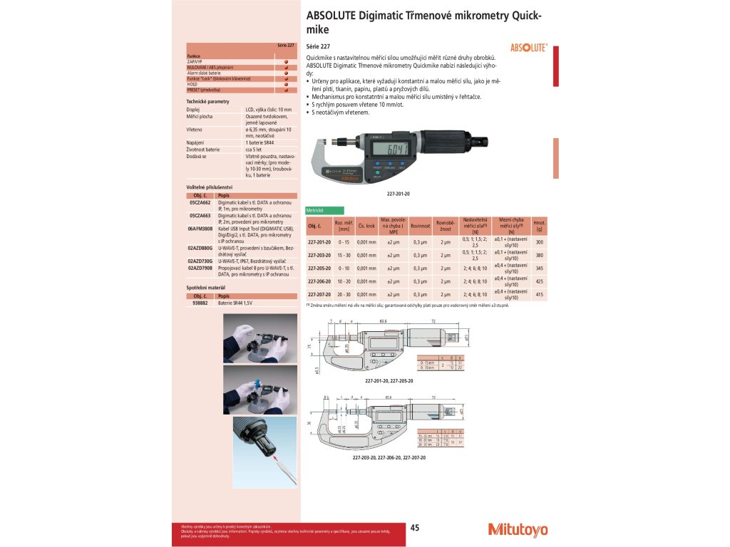 Třmenové mikrometry s nastavitelnou měřicí silou umožňující měřit různé druhy obrobků.ABSOLUTE Digimatic třmenové mikrometry Quickmike nabízí následující výhody: