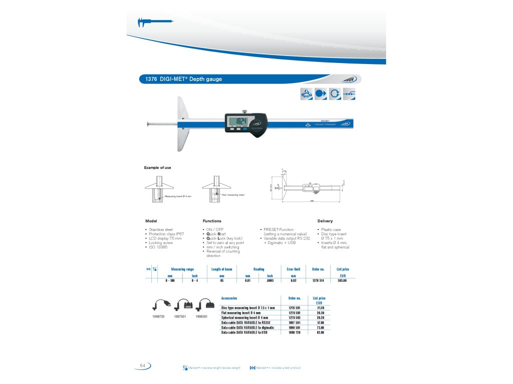 Digitální hloubkoměr s měřícími destičkami IP67 0-100/85mm HELIOS-PREISSER