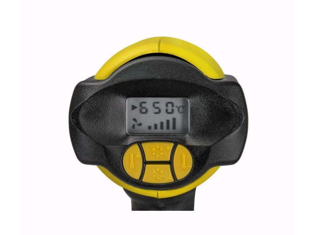 Horkovzdušná pistole HyStream 2000 má 60 předvolitelných nastavení teploty od 50 °C do 650 °C a pětistupňovou regulaci průtoku vzduchu, která ji optimalizuje pro každý úkol. Bezpečný nepřetržitý provoz zaručuje automatická regulace teploty s integrovanou ochranou proti přehřátí.