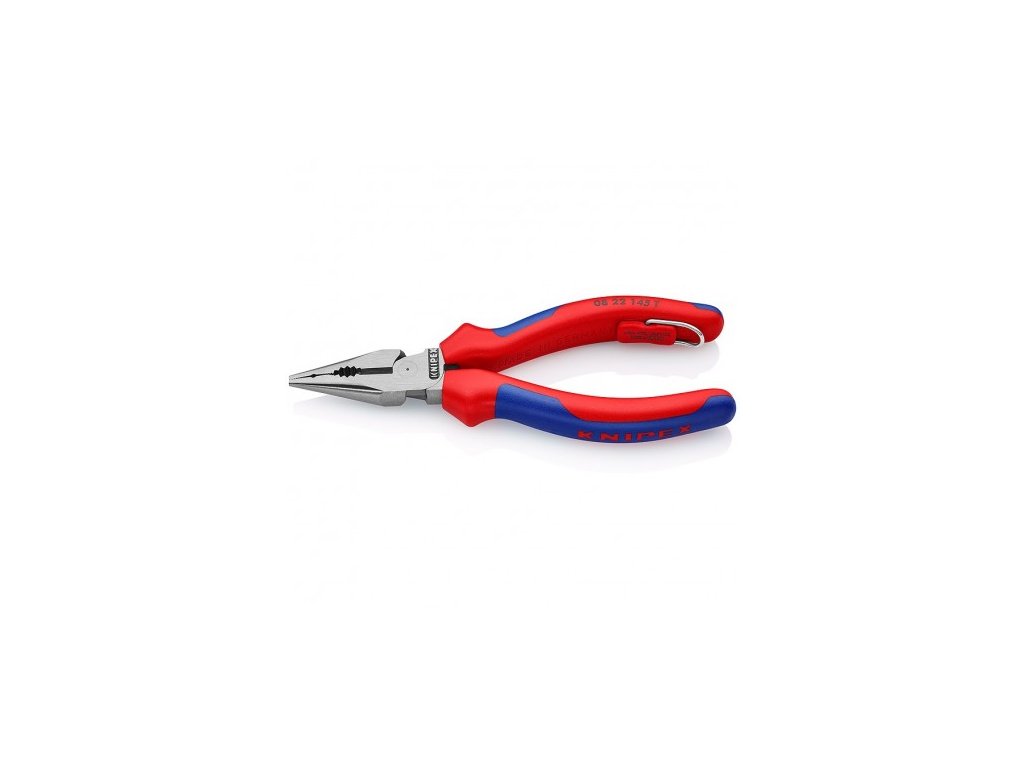 Kleště černě fosfátované atramentolem, rukojeti s vícesložkovými návleky, s integrovaným pojistným okem pro připevnění pojistky proti upadnutí velmi praktické: ideální pro práce v těžko přístupných oblastech díky úzkému tvaru hlavy se špičatými čelistmi (velmi odolné proti zkroucení) uchopovací plocha je na jedné straně vypouklá – pro bezpečné uchopování plochých dílů vyfrézovaná drážka v oblasti uchopení umožňuje bezpečné držení a tahání malých dílů jako hřebíků, kolíků a čepů spolehlivé a univerzální úzké ploché kombinované kleště na cesty jednoduché střihání díky vysoce přesazenému silovému kloubu s břity pro měkký, středně tvrdý a tvrdý drát dlouhá životnost a stabilní hroty kované ze speciální nástrojové oceli ve zvláštní jakosti, kalené v oleji v několika stupníchDoplňkové parametry