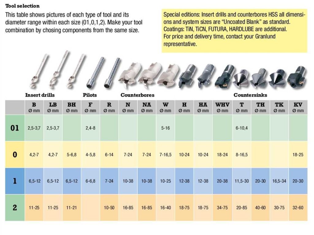 GRANLUND nabízí širokou škálu vysoce-kvalitních řezných nástrojů vyrobených z tvrdokovu a rychlořezné oceli. A to zejména záhlubníky, zpětné záhlubníky, nástroje s vyměnitelnými destičkami a výstružníky.