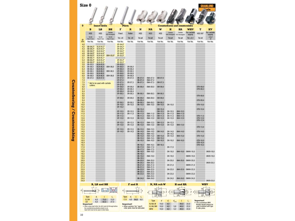 GRANLUND nabízí širokou škálu vysoce-kvalitních řezných nástrojů vyrobených z tvrdokovu a rychlořezné oceli. A to zejména záhlubníky, zpětné záhlubníky, nástroje s vyměnitelnými destičkami a výstružníky.
