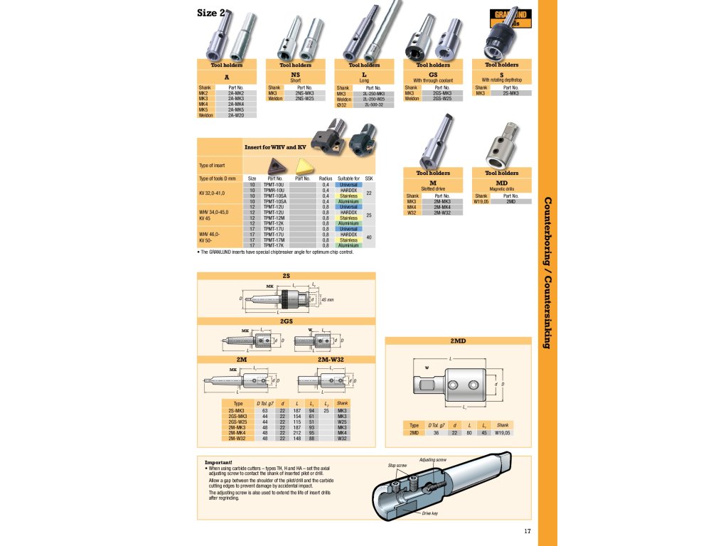 GRANLUND nabízí širokou škálu vysoce-kvalitních řezných nástrojů vyrobených z tvrdokovu a rychlořezné oceli. A to zejména záhlubníky, zpětné záhlubníky, nástroje s vyměnitelnými destičkami a výstružníky.