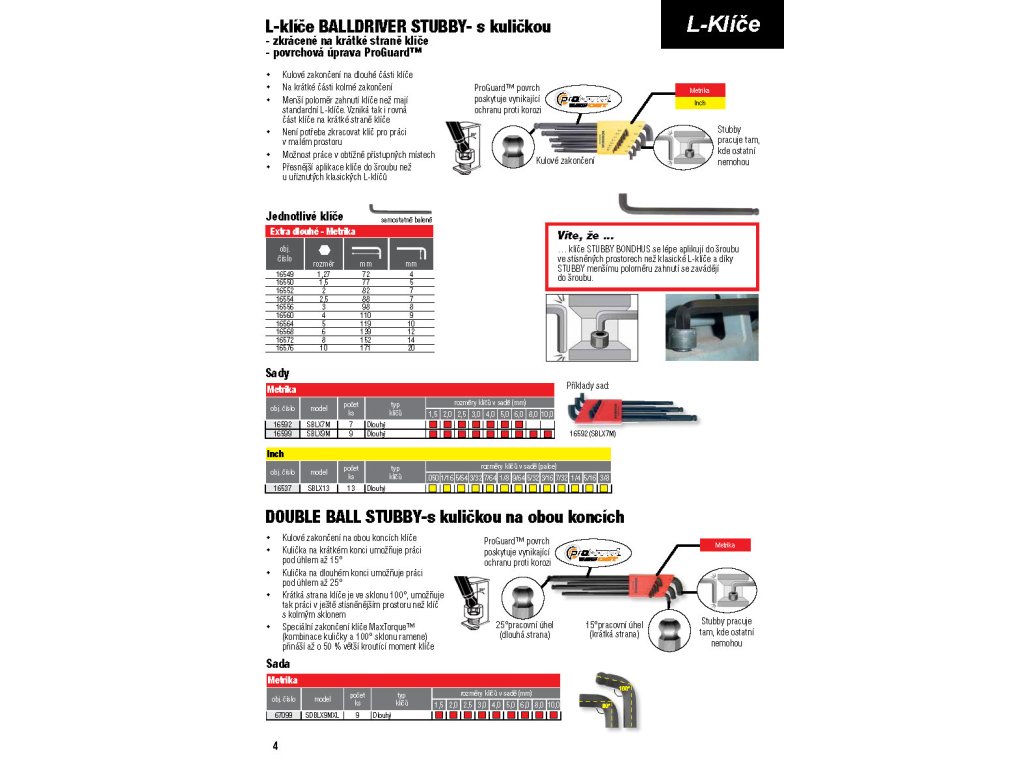 Sada imbusových klíčů s kulovým zakončením i na zkrácené straně klíče.