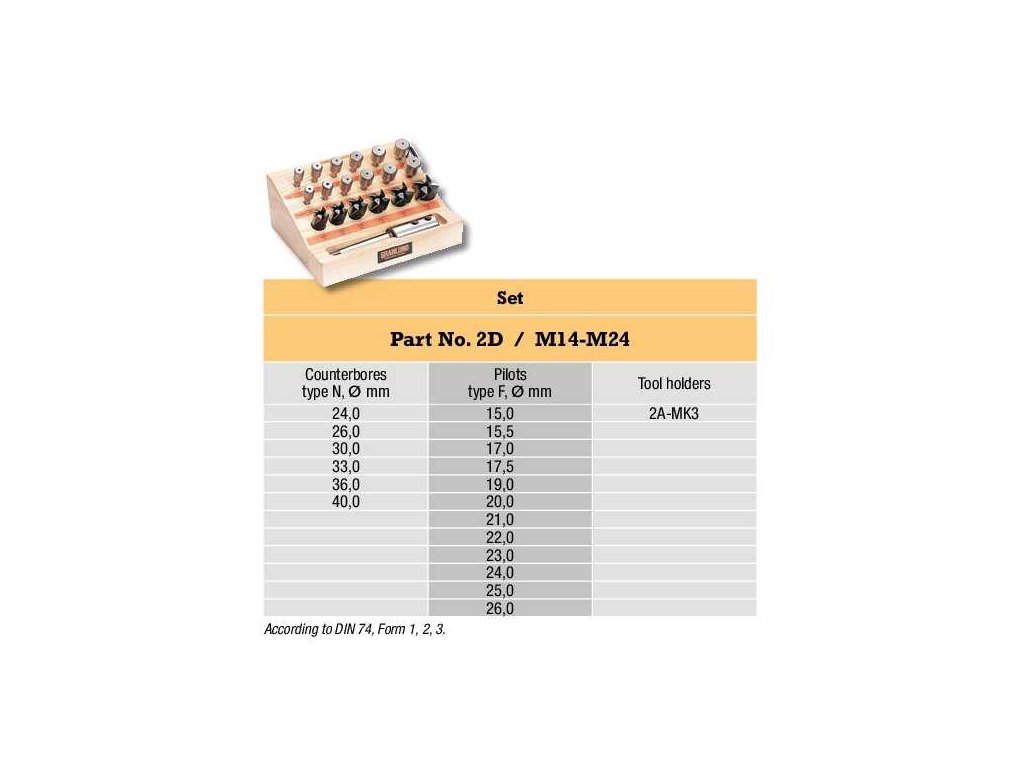 Malá sada válcových záhlubníků obsahuje:Doplňkové parametry