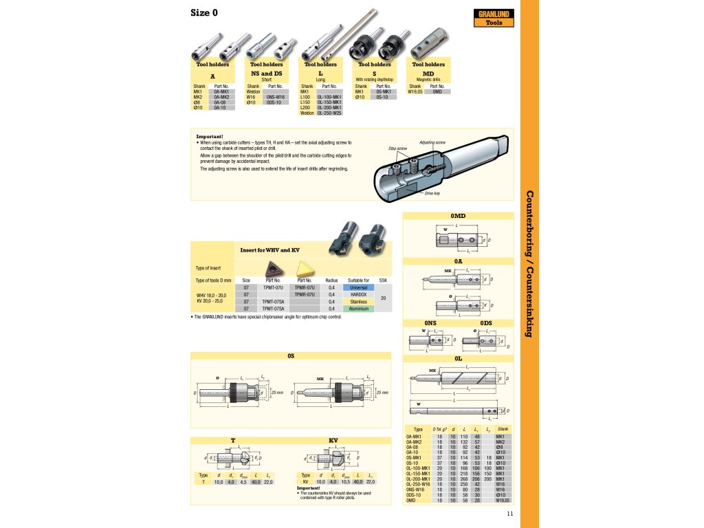 GRANLUND nabízí širokou škálu vysoce-kvalitních řezných nástrojů vyrobených z tvrdokovu a rychlořezné oceli. A to zejména záhlubníky, zpětné záhlubníky, nástroje s vyměnitelnými destičkami a výstružníky.